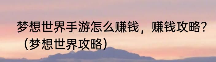 梦想世界手游怎么赚钱,赚钱攻略?(梦想世界攻略)