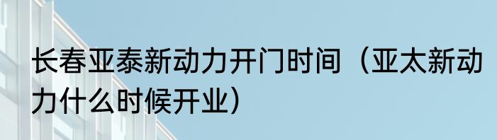 长春亚泰新动力开门时间(亚太新动力什么时候开业)