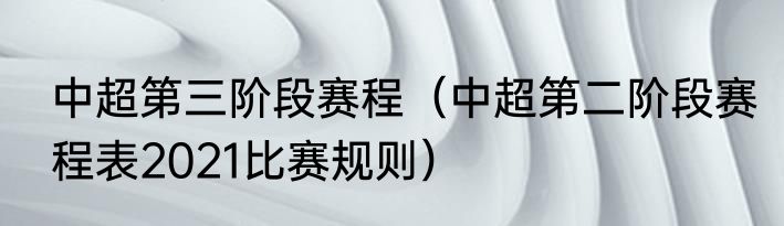 中超第三阶段赛程(中超第二阶段赛程表2021比赛规则)