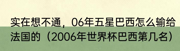 实在想不通,06年五星巴西怎么输给法国的(2006年世界杯巴西第几名)