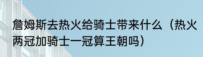 詹姆斯去热火给骑士带来什么(热火两冠加骑士一冠算王朝吗)