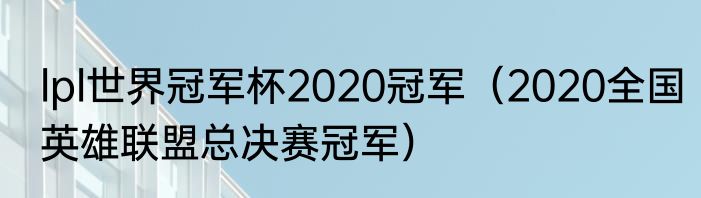 lpl世界冠军杯2020冠军(2020全国英雄联盟总决赛冠军)