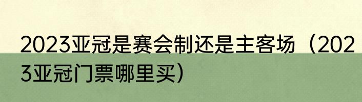 2023亚冠是赛会制还是主客场?