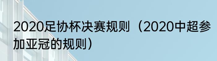 2020足协杯决赛规则(2020中超参加亚冠的规则)