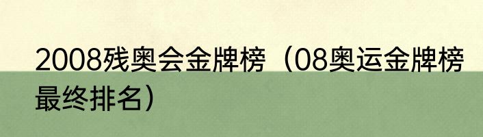 2008残奥会金牌榜(08奥运金牌榜最终排名)