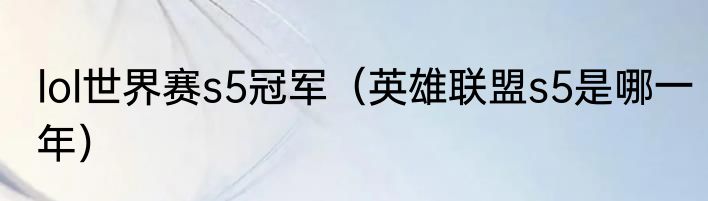 lol世界赛s5冠军(英雄联盟s5是哪一年)