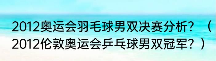 2012奥运会羽毛球男双决赛分析?(2012伦敦奥运会乒乓球男双冠军?)