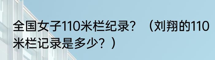 提及全国女子110米栏纪录?(刘翔的110米栏记录是多少?)的相关内容,许多人不太了解,来看看小虎的介绍吧!