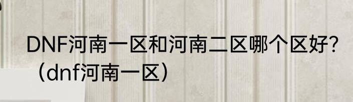 DNF河南一区和河南二区哪个区好?(dnf河南一区)
