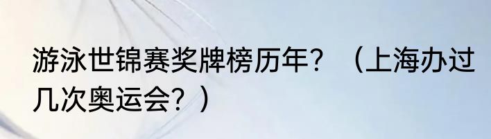 提及游泳世锦赛奖牌榜历年?(上海办过几次奥运会?)的相关内容,许多人不太了解,来看看小寿的介绍吧!