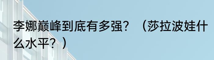 提及李娜巅峰到底有多强?(莎拉波娃什么水平?)的相关内容,许多人不太了解,来看看小奋的介绍吧!