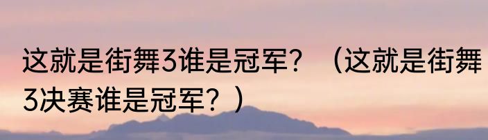 提及这就是街舞3谁是冠军?(这就是街舞3决赛谁是冠军?)的相关内容,许多人不太了解,来看看小禧的介绍吧!