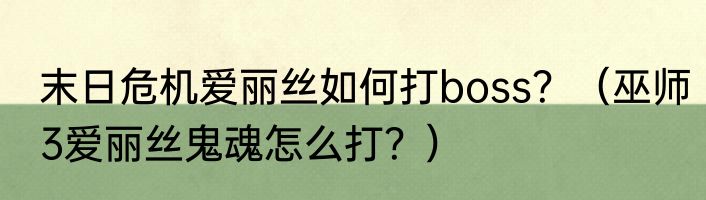 提及末日危机爱丽丝如何打boss?(巫师3爱丽丝鬼魂怎么打?)的相关内容,许多人不太了解,来看看小惠的介绍吧!