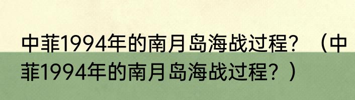 回答:中菲1994年的南月岛海战过程