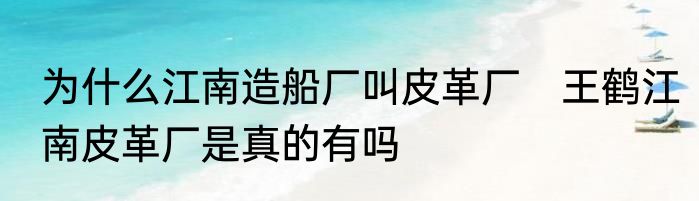 为什么江南造船厂叫皮革厂 王鹤江南皮革厂是真的有吗