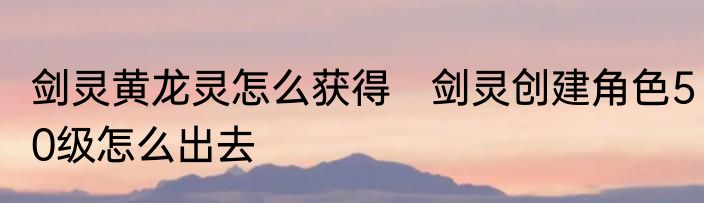 剑灵黄龙灵怎么获得 剑灵创建角色50级怎么出去