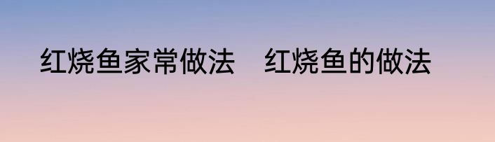 红烧鱼的做法,红烧鱼怎么做好吃,红烧鱼的家常做法?