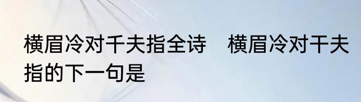 横眉冷对千夫指全诗 横眉冷对干夫指的下一句是