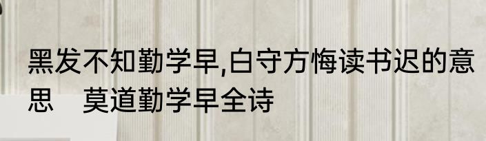 黑发不知勤学早,白守方悔读书迟的意思 莫道勤学早全诗
