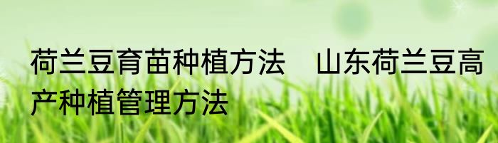 荷兰豆育苗种植方法 山东荷兰豆高产种植管理方法