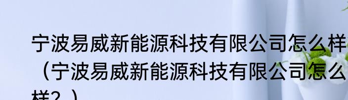 宁波易威新能源科技有限公司怎么样?(宁波易威新能源科技有限公司怎么样?)