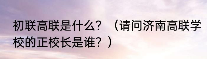 提及初联高联是什么?(请问济南高联学校的正校长是谁?)的相关内容,许多人不太了解,来看看小勤的介绍吧!