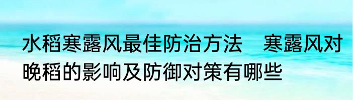 水稻寒露风最佳防治方法 寒露风对晚稻的影响及防御对策有哪些