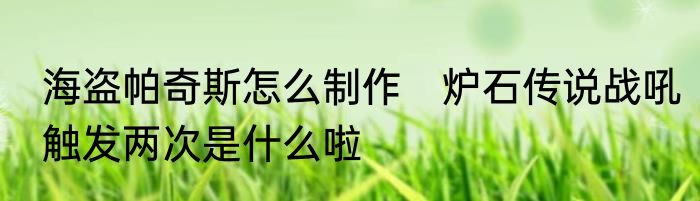 海盗帕奇斯怎么制作 炉石传说战吼触发两次是什么啦