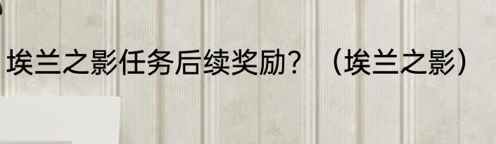 埃兰之影任务就是杀掉埃兰之影得到任务物品。接下来任务是: