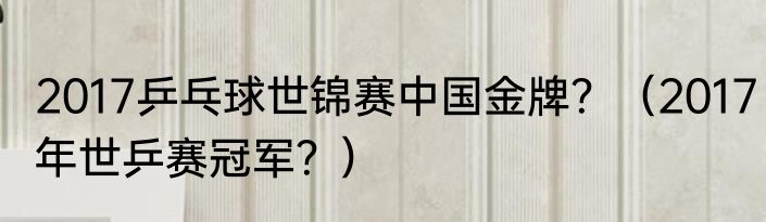 2017乒乓球世锦赛中国金牌?(2017年世乒赛冠军?)