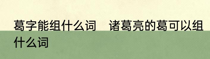 葛字能组什么词 诸葛亮的葛可以组什么词