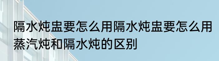 隔水炖盅要怎么用隔水炖盅要怎么用 蒸汽炖和隔水炖的区别