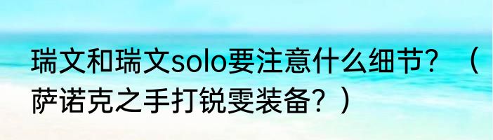 瑞文和瑞文solo要注意什么细节?(萨诺克之手打锐雯装备?)