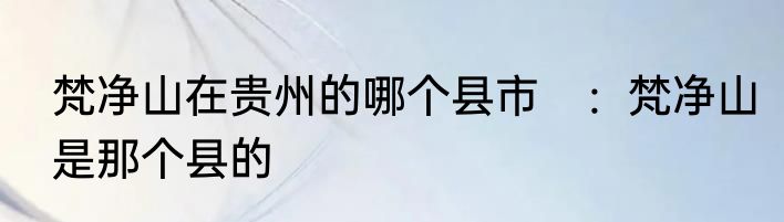 梵净山在贵州的哪个县市 :梵净山是那个县的