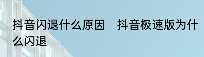 抖音闪退,可能是你手机配置比较低,或者是其他硬件问题,建议更换硬件就可以了,抖音APP是不会出问题的,提供下载的抖音版本,肯定是经过多次测试的。