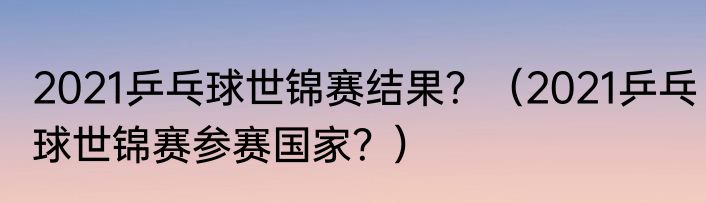 提及2021乒乓球世锦赛结果?(2021乒乓球世锦赛参赛国家?)的相关内容,许多人不太了解,来看看小亮的介绍吧!