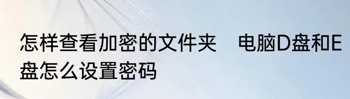 怎样查看加密的文件夹 电脑D盘和E盘怎么设置密码