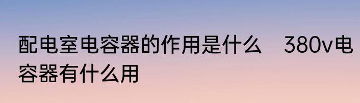 配电室电容器的作用是什么 380v电容器有什么用