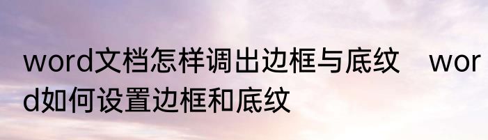 word文档怎样调出边框与底纹 word如何设置边框和底纹