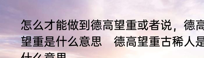 怎么才能做到德高望重或者说,德高望重是什么意思 德高望重古稀人是什么意思