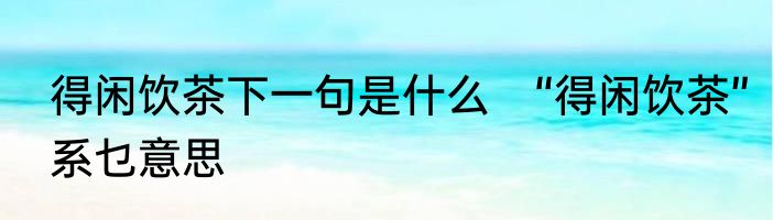 得闲饮茶下一句是什么 “得闲饮茶”系乜意思