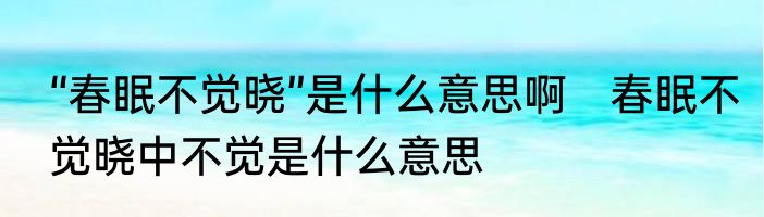 “春眠不觉晓”是什么意思啊?