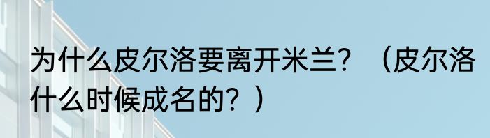 为什么皮尔洛要离开米兰?(皮尔洛什么时候成名的?)
