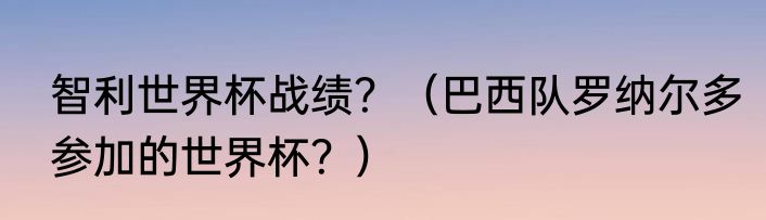 提及智利世界杯战绩?(巴西队罗纳尔多参加的世界杯?)的相关内容,许多人不太了解,来看看小彩的介绍吧!