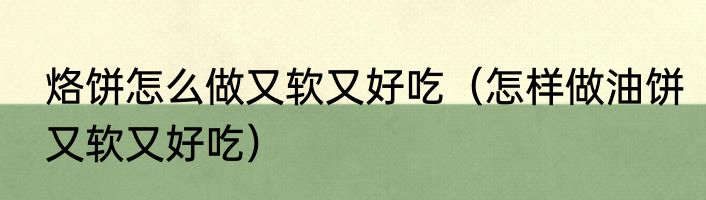 烙饼怎么做又软又好吃(怎样做油饼又软又好吃)