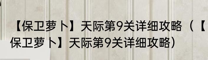 【保卫萝卜】天际第9关详细攻略(【保卫萝卜】天际第9关详细攻略)