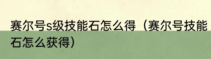 赛尔号s级技能石怎么得(赛尔号技能石怎么获得)