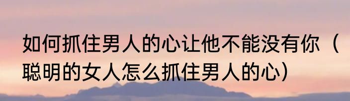 如何抓住男人的心让他不能没有你(聪明的女人怎么抓住男人的心)