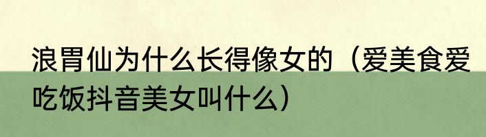 浪胃仙为什么长得像女的(爱美食爱吃饭抖音美女叫什么)