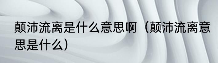 颠沛流离是什么意思啊(颠沛流离意思是什么)